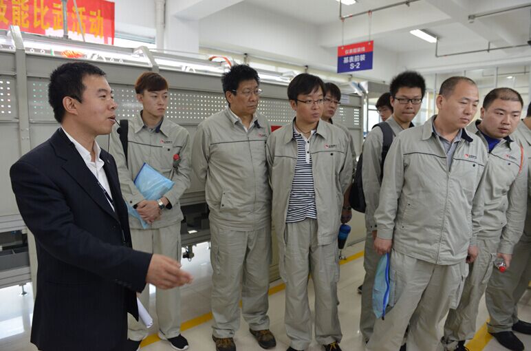 隨后,學(xué)員們分兩批在天信章欽養(yǎng)講師、陶朝建講師的帶領(lǐng)下參觀天信,高科技的展廳、規(guī)范整潔的生產(chǎn)車間、細(xì)致的看板管理、企業(yè)文化建設(shè)等方面,都引起了大家濃厚的興趣。