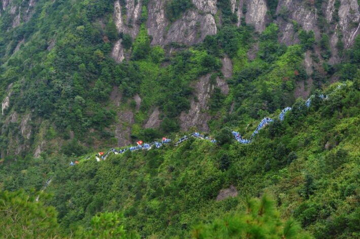 在整個行軍過程中,最有挑戰(zhàn)的路段莫過于三十六彎了,有些地方臺階的陡峭度甚至達到了六七十度,每跨上去一級,大腿就會又酸又疼,在互相鼓勵下,天信隊員們不放棄不拋棄,一步步堅持到底,終于站在了最高峰俯視群山,當美景盡收眼底的那一刻,大家紛紛拿出手機記錄下這個難忘的旅程,并在微信、微博搶發(fā),一瞬間朋友圈被紅色正能量刷得滿滿的!