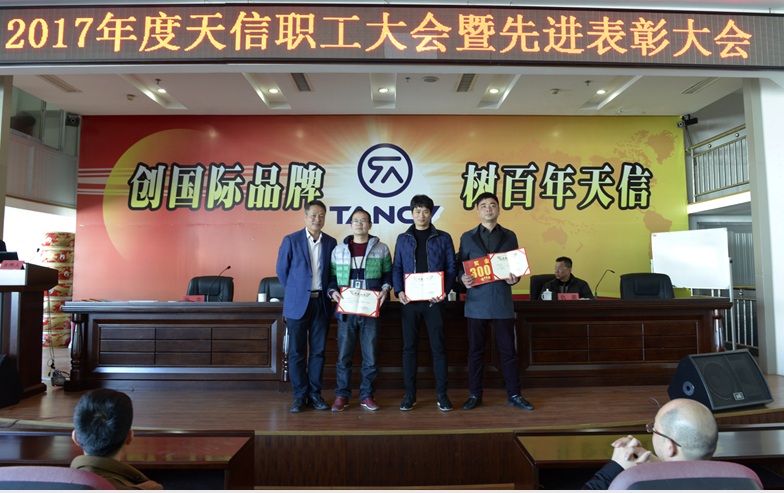 2月5日,2017年度天信職工大會(huì)暨先進(jìn)表彰大會(huì)在公司二樓大型會(huì)議室召開(kāi),會(huì)議由副總裁張華主持,公司總裁范叔沙,副總裁葉朋、仇梁以及全體員工共360多人參加。本次會(huì)議既是一次總結(jié)表彰會(huì),也是一個(gè)繼往開(kāi)來(lái)的動(dòng)員會(huì)。