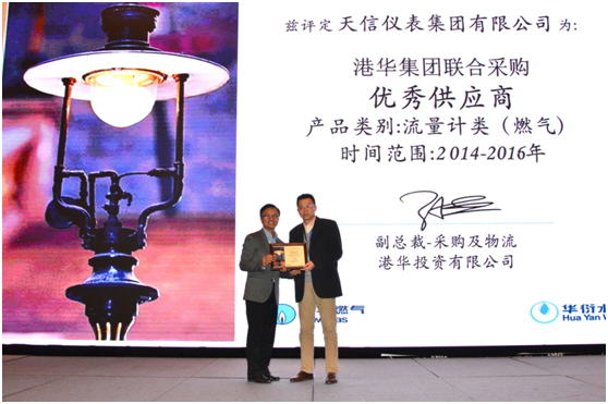 近日,天信儀表集團(tuán)有限公司榮獲2014~2016年港華集團(tuán)聯(lián)合采購(gòu)優(yōu)秀供應(yīng)商(燃?xì)饬髁坑?jì)類)的稱號(hào),是天信繼2010~2011年度獲獎(jiǎng)后再次獲此殊榮。