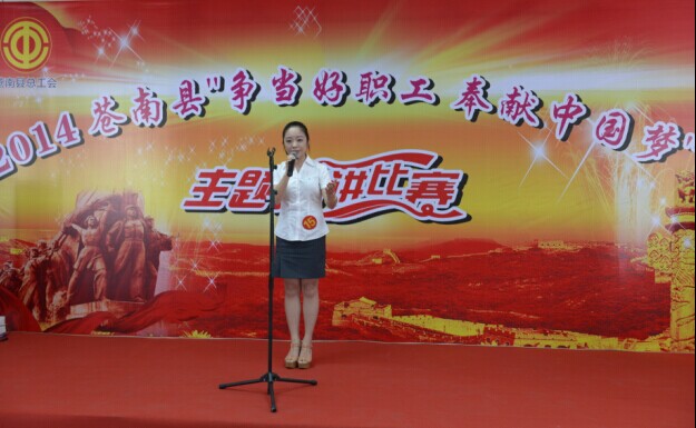 2014年7月22日下午,在蒼南縣“爭當(dāng)好職工,奉獻(xiàn)中國夢”主題演講比賽中,我公司選送的黃君用樸實(shí)的語言,真情的故事,鮮活的事跡,講述了她的追夢故事,榮獲了第二名的好成績。